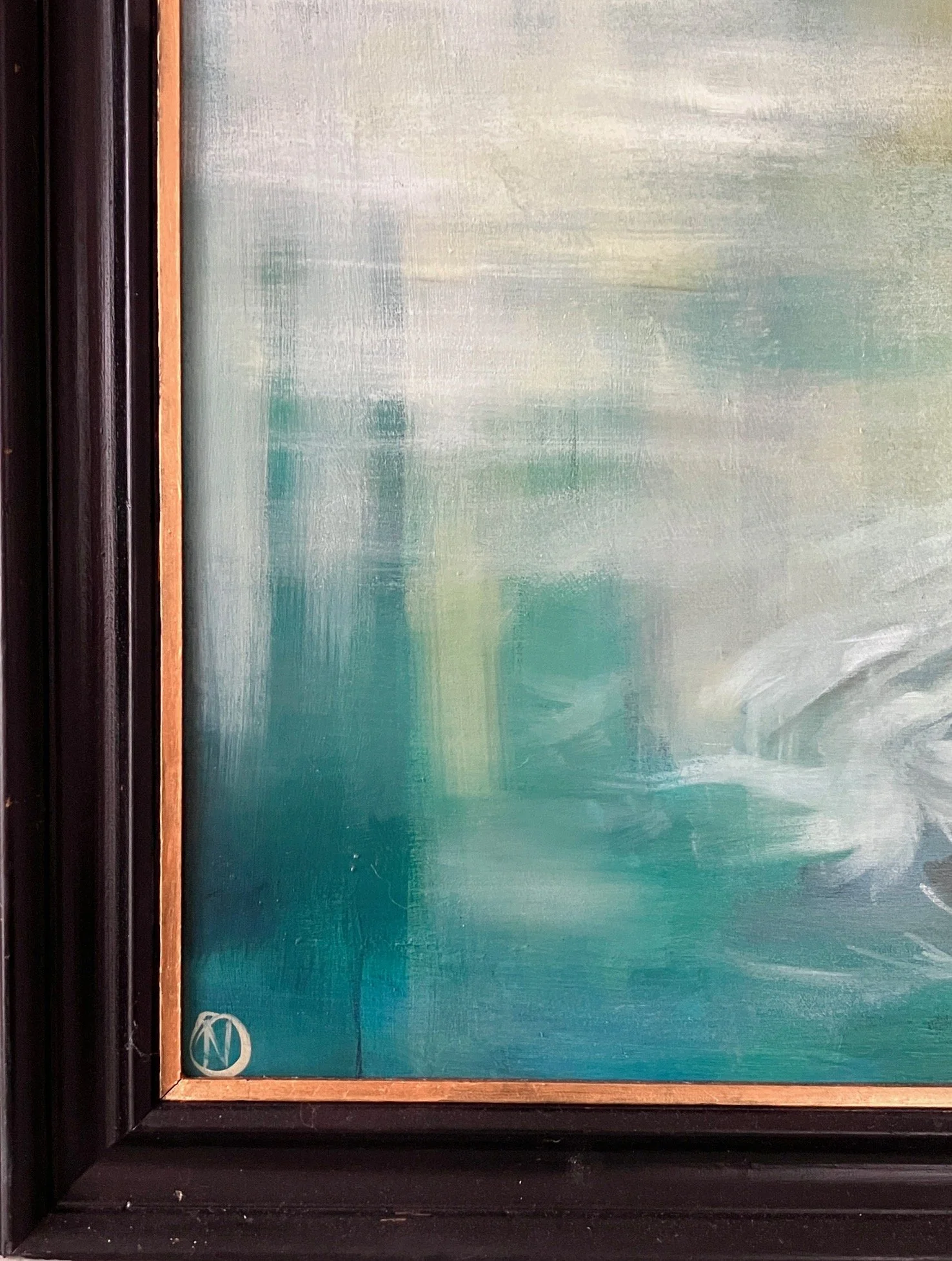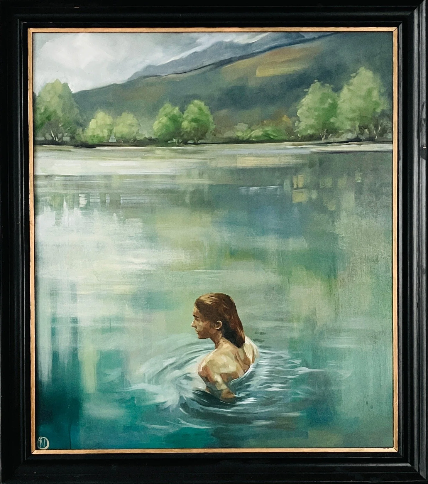 Acrylic under-painting with Oil glazes on panel, giving a depth of colour and luminosity.